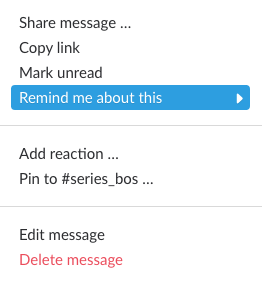 Anyone who juggles multiple projects knows the value of prioritizing. Certain tasks simply need to take priority over others at any given moment. Prioritizing is a highly important skill, however a drawback to prioritizing is remembering to get back to the tasks you’ve set lower on your list. I’ve talked at length about my love of Slack in my blog post entitled SLACK for the Post Production Workflow. Let me just add here that I utilize the reminders function built within Slack for ALL work based reminders. It’s often the case that I’m needed to be reminded about something I learn from a Slack message. I can click the message on Slack and choose the remind me about this function. It doesn’t get any faster than that. In addition, since we use Slack so much for inter-office communication, I’m more likely to see a Slack reminder than one from other apps. It just makes sense to keep this all in one ecosystem.